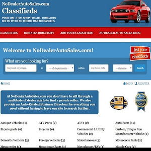 No Dealer Auto Sales Classified for Private Sellers to sell or trade with 60 day FREE listing their vehicle, auto, and/or Auto Related items. Business Directory for those who are searching for Auto Related Business and want the convenience of having them all on one website. Simple, Convenient, and Affordable.What's new in No Dealer Auto Sales 1.37.50.82
